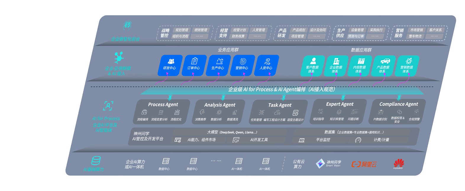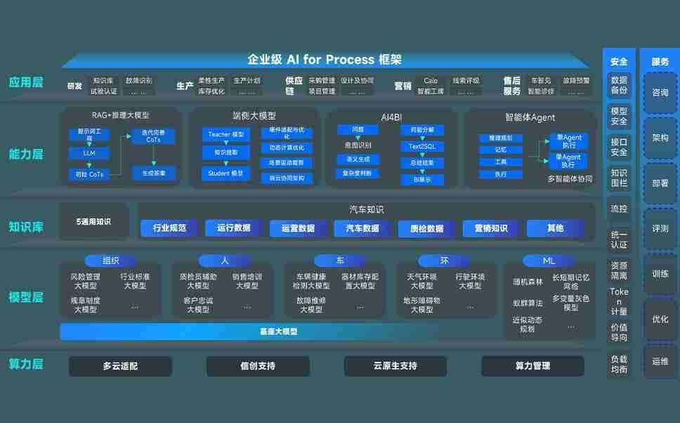 端到端的一站式AI工作空间深度融合了从企业战略规划到日常经营的全流程业务板块,,定向解决车企内部领域多、、、部门多、、、链条长、、、场景碎片化等难题,,支持车企快速构建以AI为核心的生产力写作体系,,实现任务执行与AI能力的无缝集成与交互